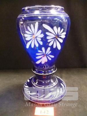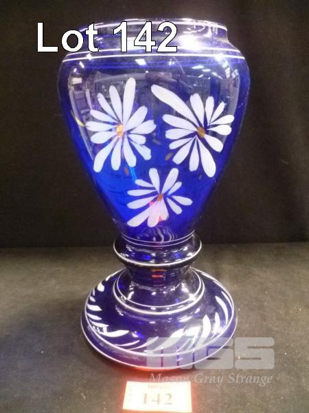 BRISTLE BLUE HAND PAINTED GLASS VASE, 31cm (H)