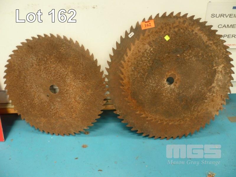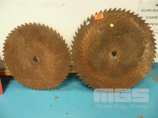 2 x VINTAGE CIRCULAR SAW BLADES, 61 & 54cm DIAMETER