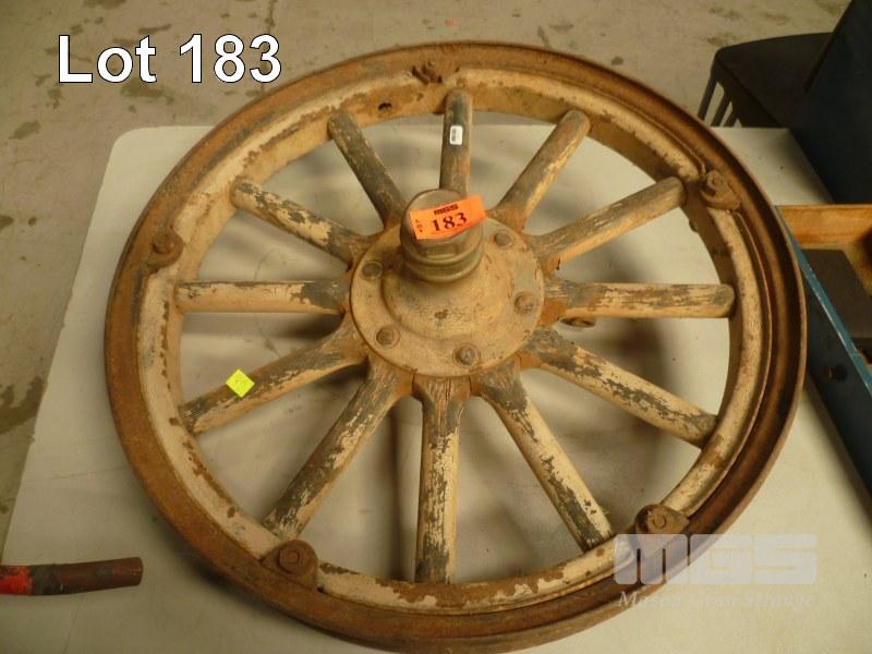 VINTAGE TIMBER SPOKED WHEEL, DUNANT CENTRE HUB, 62cm DIAMETER