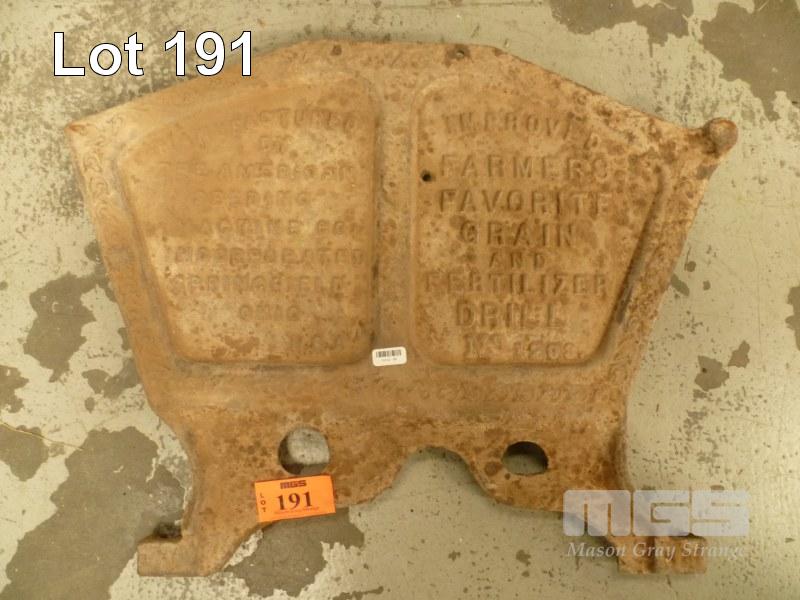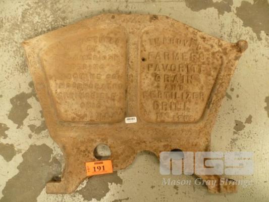 VINTAGE CAST SEEDER BOX END, "THE AMERICAN SEEDING MACHINE CO INCORPORATED SPRINGFIELD, OHIO, USA"