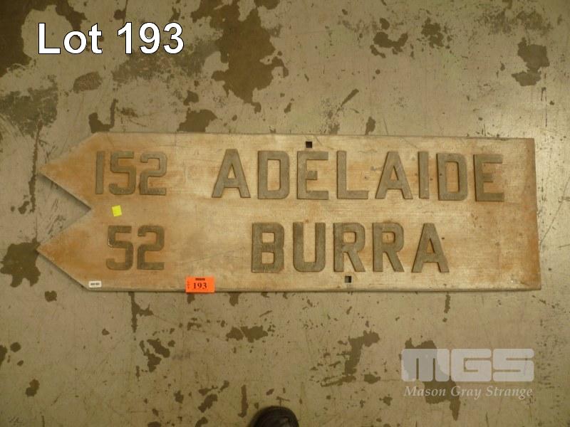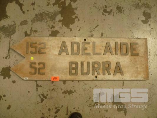 METAL SIGN, "ADELAIDE 152", "BURRA 52", 106 x 33cm