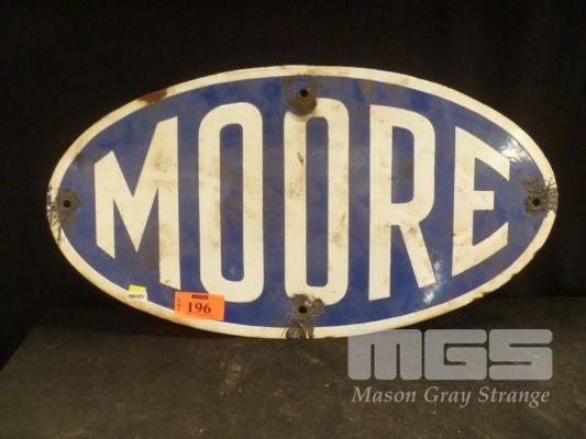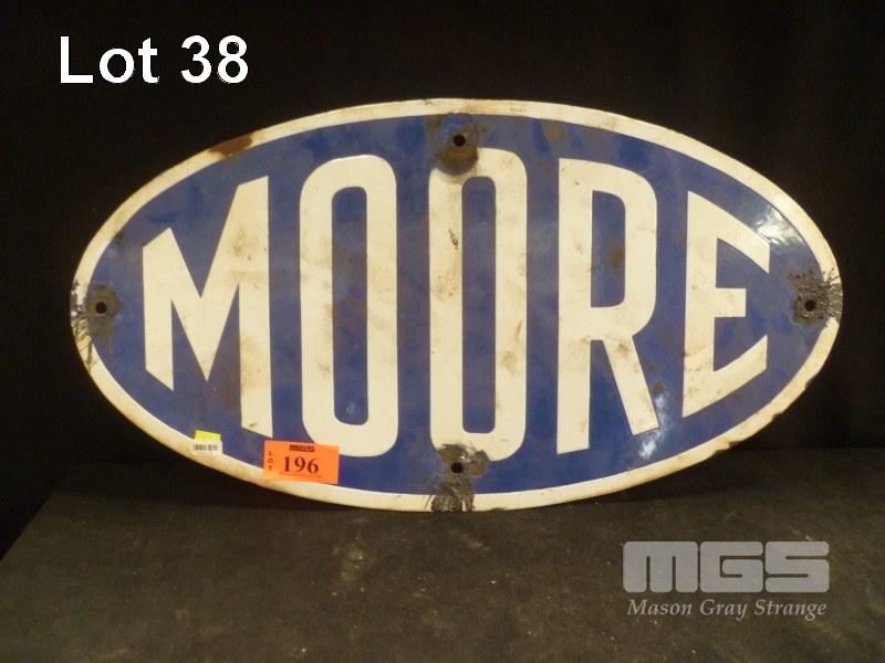 OVAL ENAMEL SIGN, "MOORE", 61 x 32cm