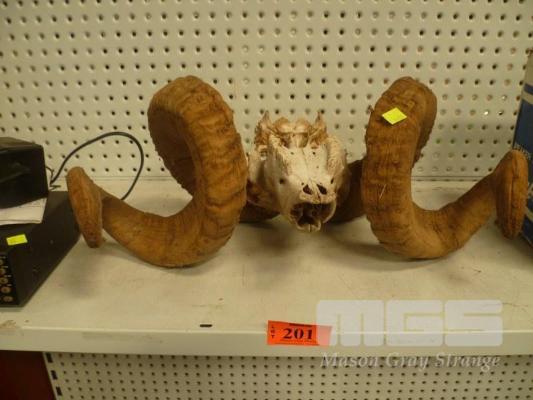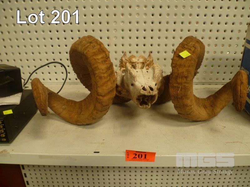 PAIR OF RAMS HORNS ATTACHED TO BASE OF SKULL