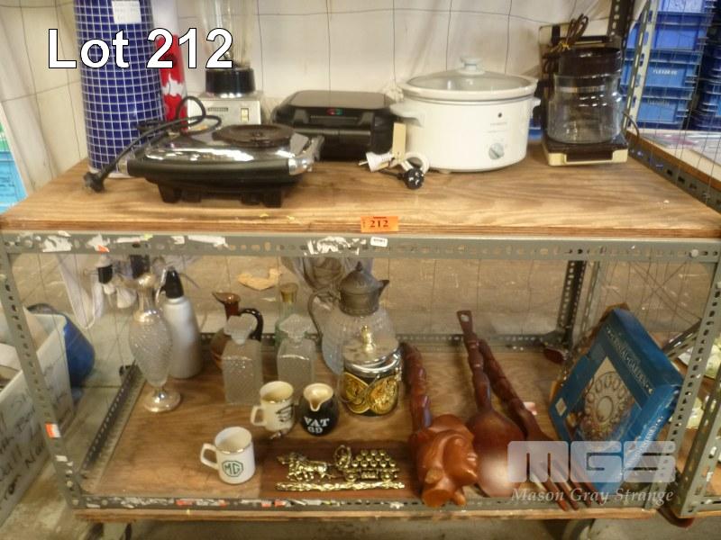 ASSORTED KITCHEN APPLIANCES, BARWARE, LARGE FORK & SPOON, ETC, 2 x BAYS