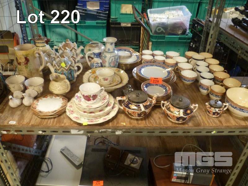 ASSORTED DINNERWARE, CUPS & TEAPOTS