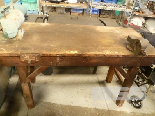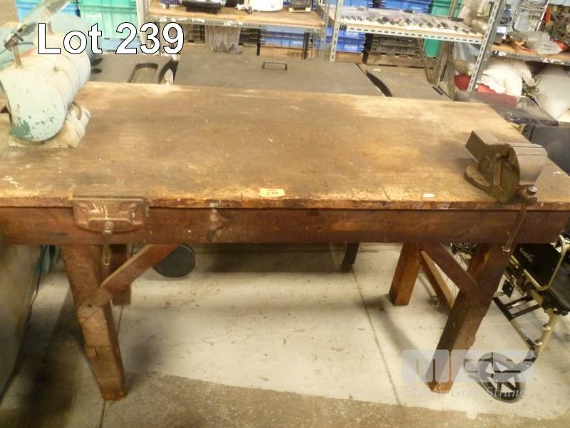 TIMBER WORK BENCH, 156cm (L), WITH 6" BENCH GRINDER, RECORD No2 BENCH VICE & TIMBER VICE