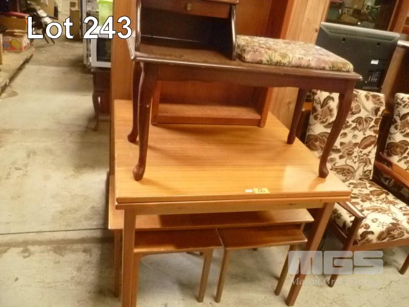 TEAK EXTENSION TABLE, TEAK NEST 3 TABLES, TELEPHONE TABLE & SMALL BOOKCASE