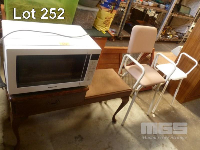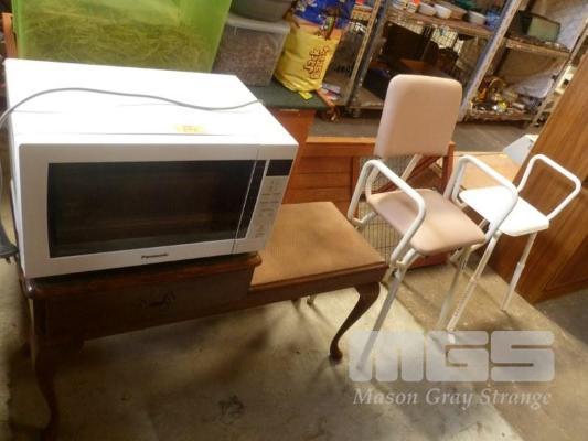 PANASONIC MICROWAVE, TELEPHONE CHAIR & 2 x ASSIST CHAIRS