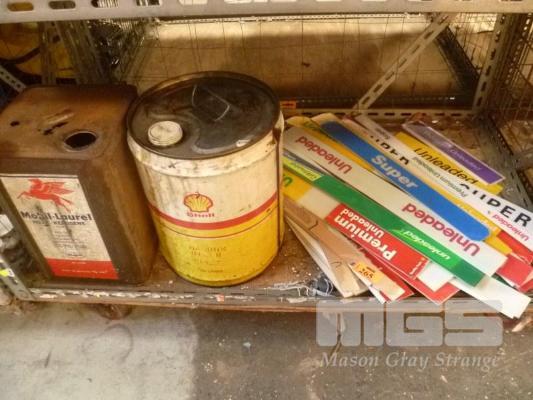 ASSORTED PETROL BOWSER NAME PLATES WITH SHELL & MOBIL TINS