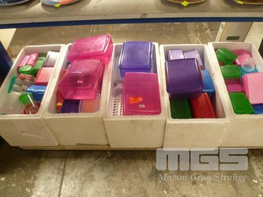 PLASTIC STORAGE CONTAINERS, 5 x BOXES