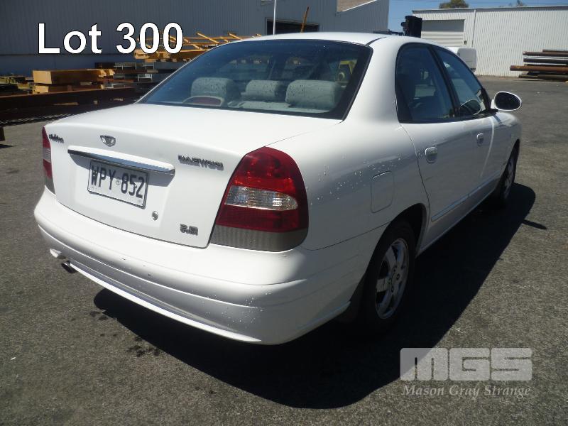 2002 DAEWOO NUBIRA CDX SEDAN REG: WPY-852 (SA) VIN: KLAJA69ZE1K646899 ENG: 102943 ODO: 121,964 KM 4 CYL, 4 SPEED AUTOMATIC, PETROL, WHITE, 4 DOORS, 5 SEAT, AIR BAG, AIR CON, ALLOY WHEELS, CD PLAYER, CENTRAL LOCKING, POWER STEERING, POWER WINDOWS, SPARE WHEEL (NO PAPERS, WITH 2 KEY/S, WITH OWNER'S MANUAL, NO SERVICE BOOKS) CONDITION: FRONT LEFT GUARD - DENTED BATTERY - REQUIRES REPLACEMENT
