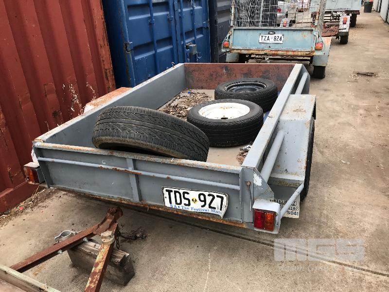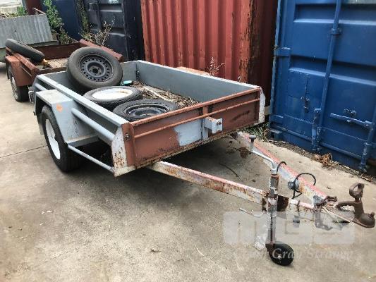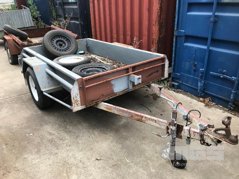 MODERN TRAILERS 7 X 4 BOX TRAILER SINGLE AXLE, EXTENDED DRAWER BAR, BALL HITCH, JOCKEY WHEEL, 3 X SPARE 5 STUD RIMS & TYRES (NO PAPERS)