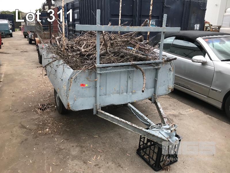 HOMEMADE UTE BODY TRAILER SINGLE AXLE, BALL HITCH, WITH LIGHTS, FREE KINDLING, TO SUIT HOBBY FARM FEED OUT TRAILER (NO PAPERS, NO OWNER'S MANUAL, NO SERVICE BOOKS)