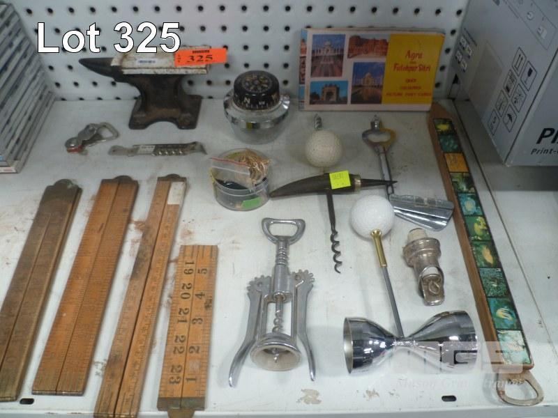 SMALL ANVIL, BOX RULERS, BOAT COMPASS & ASSORTED BARWARE