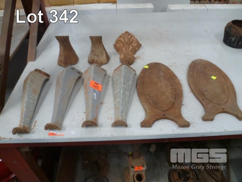 CAST VINTAGE ITEMS IN SET 4 ENAMELLED STOVE LEGS, BATH TUB LEGS & PAIR OF ENDS