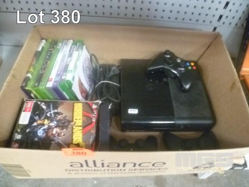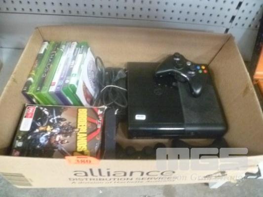 XBOX 360 GAME CONSOLE WITH POWER SUPPLY & ASSORTED GAMES