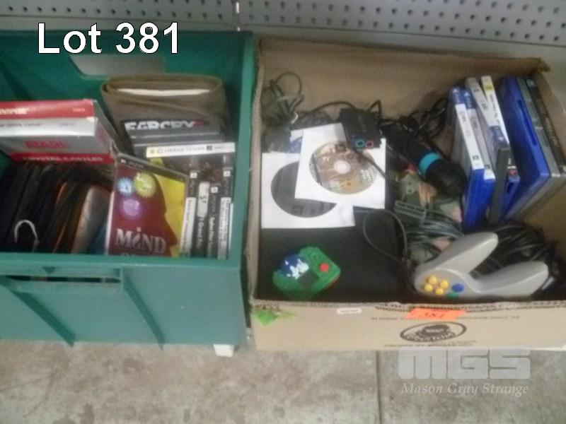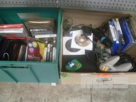 PLAYSTATION 2 GAME CONSOLE WITH POWER CABLE, ACCESSORIES & ASSORTED GAMES WITH 1 x CRATE EMPTY GAME CASES