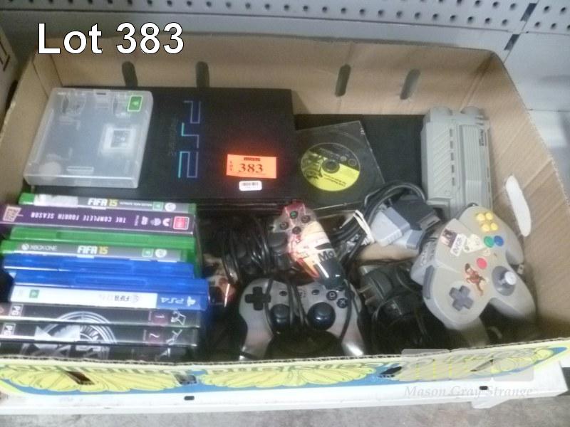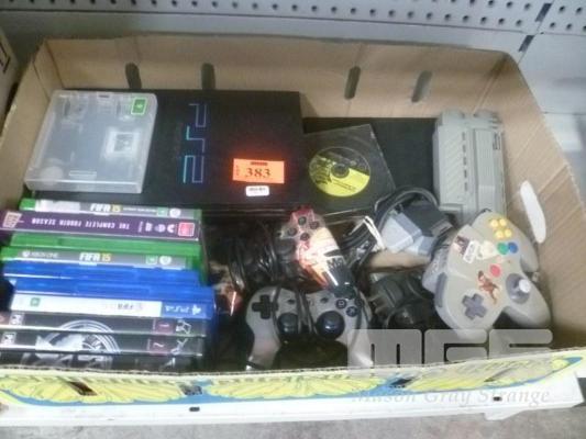 PLAYSTATION 2 GAME CONSOLES, WITH CONTROLLERS & ASSORTED GAMES
