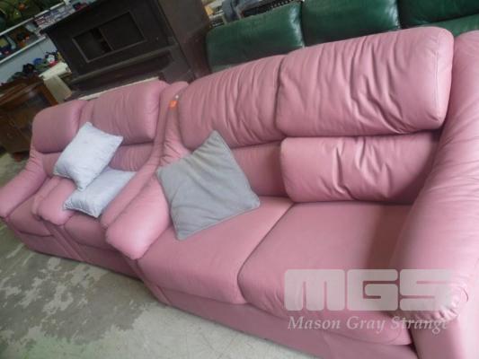 L.RITOSSA.FURNISHERS, PINK VINYL 3 PIECE LOUNGE SUITE, INC; 2 SEATER & 2 X SINGLES