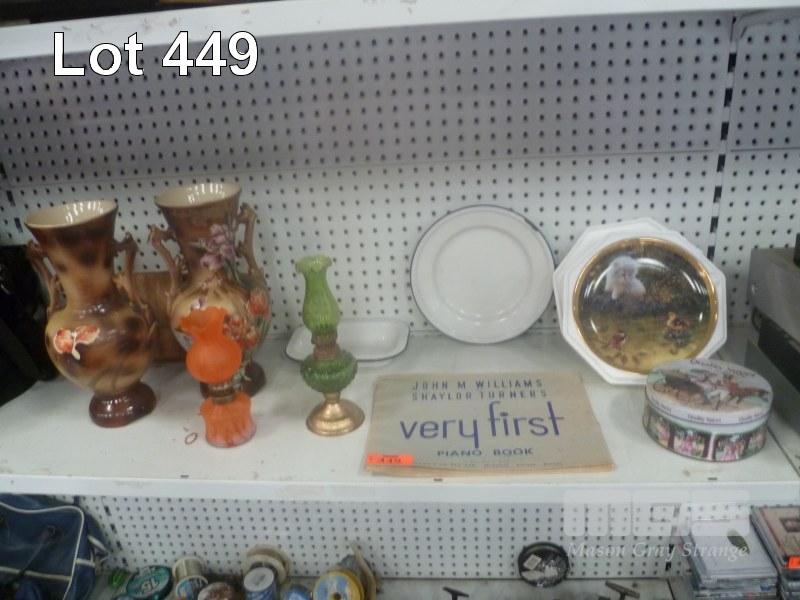 VINTAGE VASES, ENAMELWARE & COLOURED KERO LAMPS