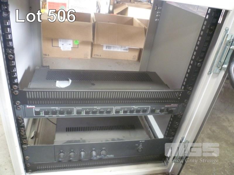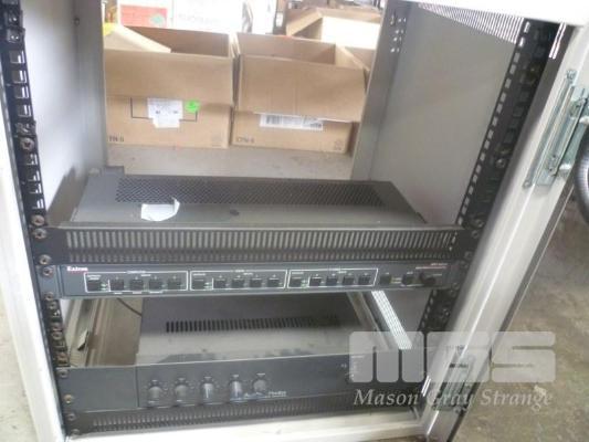 DATA RACK CABINET, 60 (H) x 54 (W) x 47cm (D), LOCKABLE (NO KEYS) WITH EXTRON MPX 423 A MEDIA PRESENTATION MATRIX & AUSTRALIAN MONITOR IC30 AMPLIFIER