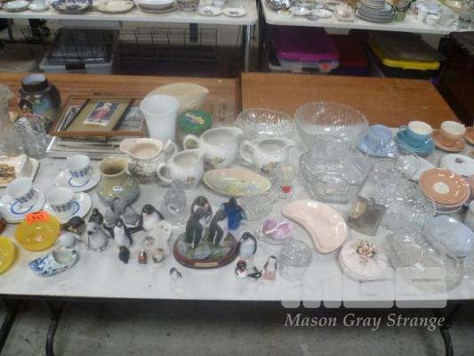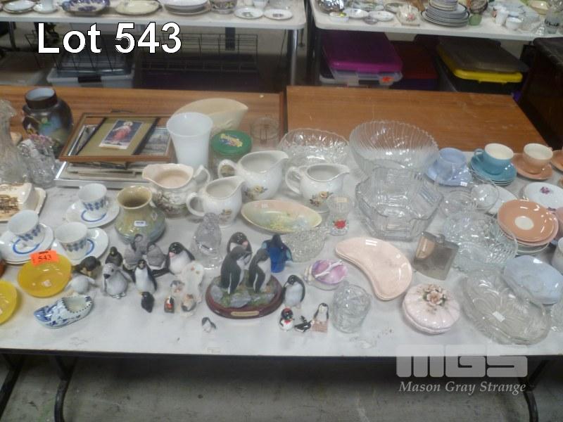 PENGUIN ORNAMENTS, GLASS BOWLS, TEA CUPS, ETC, 1 x TABLE