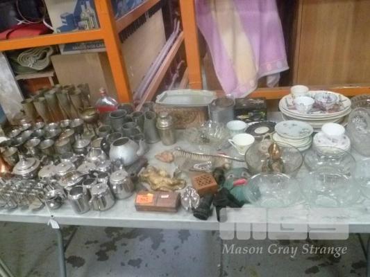 ASSORTED EPNS, PEWTER, GLASSWARE, ETC, 1 x TABLE
