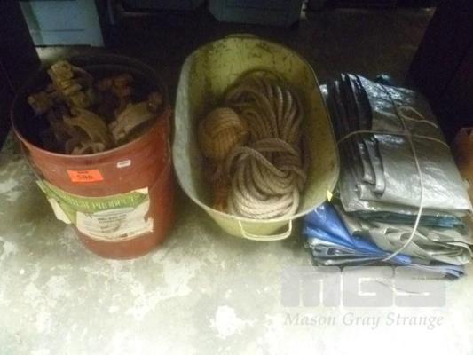 SCAFFOLD CLAMPS, ROPES, VINTAGE TROUGH & TARPS