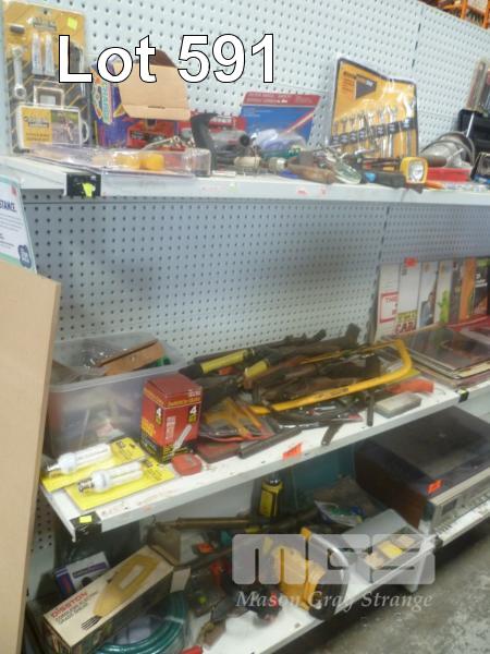 MCCULLOCH PETROL CHAINSAW, HAND TOOLS, GARDEN TOOLS, ETC, 3 x SHELVES