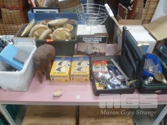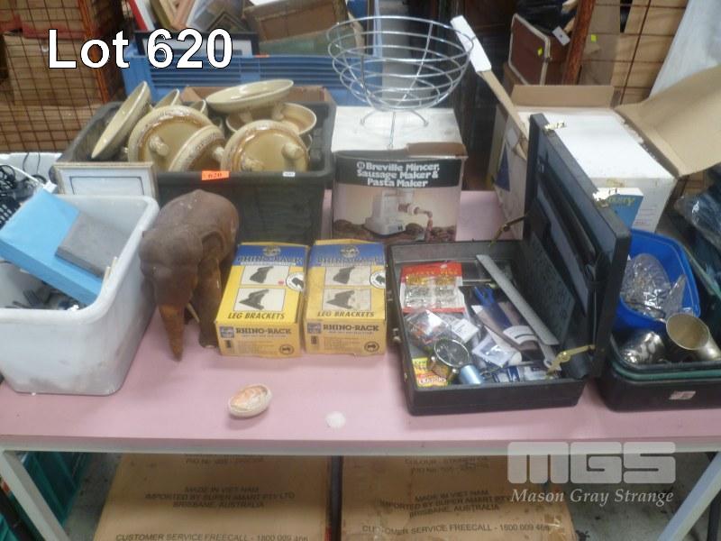 BREVILLE MINCER/SAUSAGE MAKER/PASTA MAKER, RHINO-RACK LEG BRACKETS, CUTLERY, ETC, 1 x TABLE