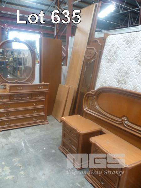 TIMBER BEDROOM SUITE, ORNATE MOULDINGS, CHEST DRESSERS, PAIR BEDSIDE CABINETS, QUEEN SIZE ENSEMBLE WITH HEAD & FOOT, WITH BUILT-IN WARDROBE