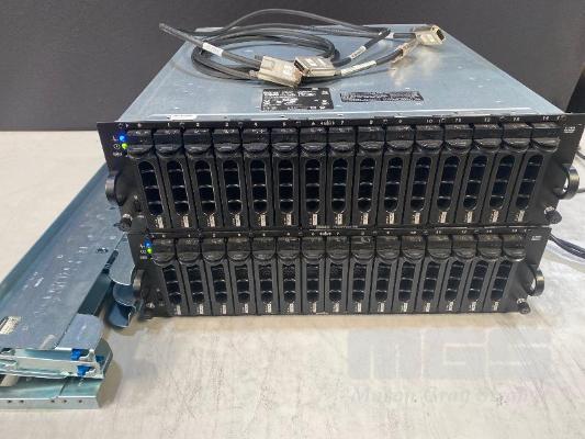 2 x RACKMOUNT STORAGE ARRAYS, DELL POWERVAULT MD1000, EACH 15 x 1TB SATA HDD, 2 x PSU WITH RAILS & CABLES S/N:CJ13Y1S, C25YW1S