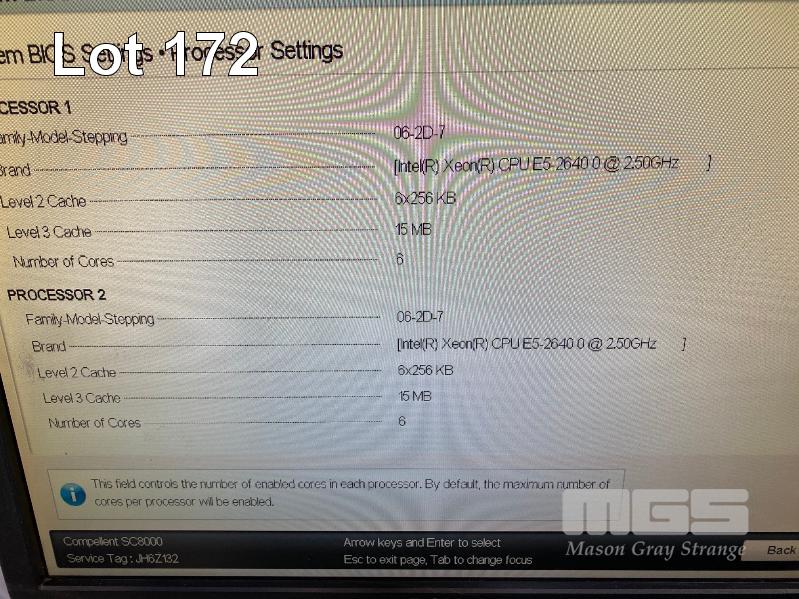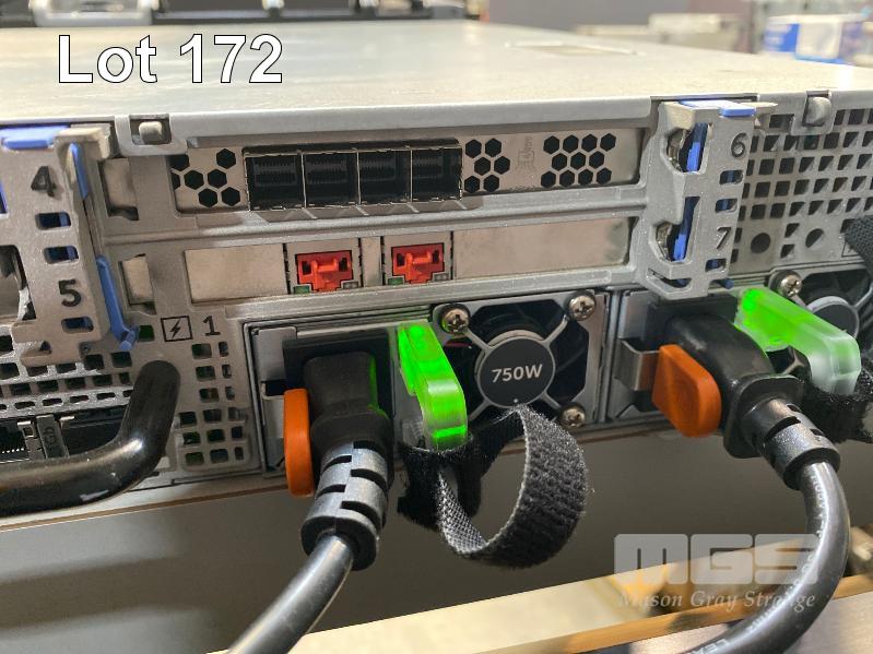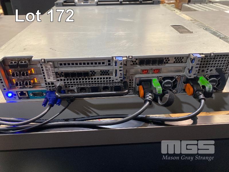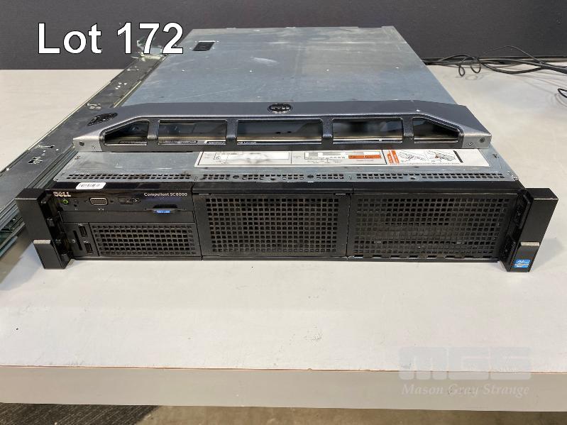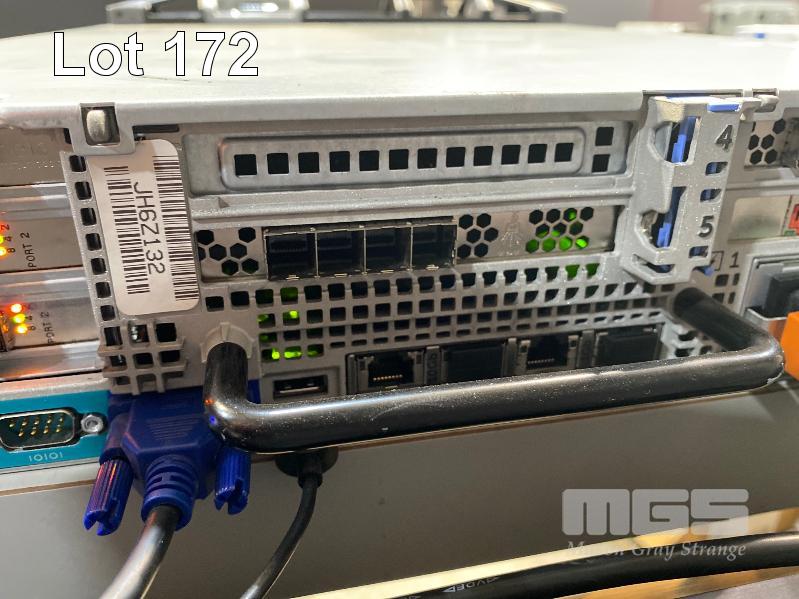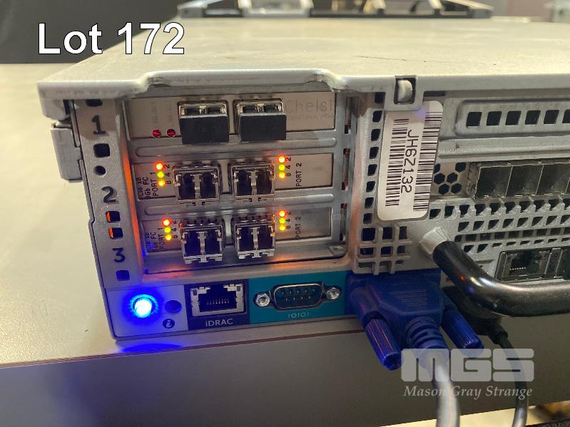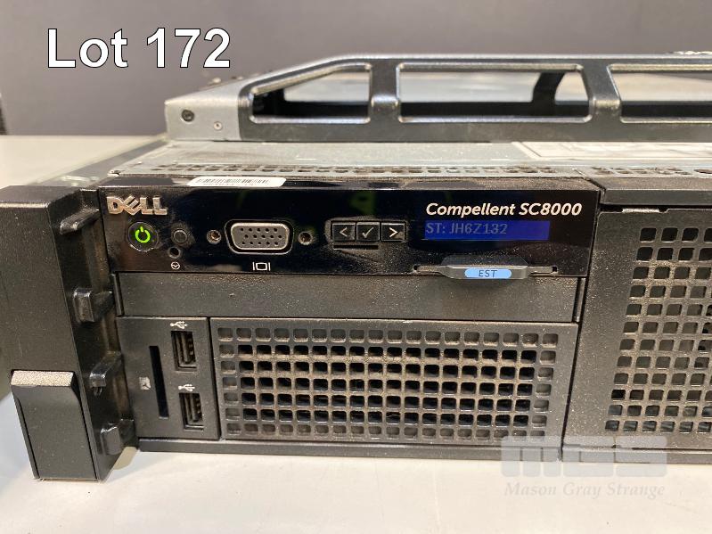RACKMOUNT STORAGE CENTER CONTROLLER, DELL COMPELLENT SC8000, 2U, 2 x XEON E5-2640 @ 2.5GHz, 64GB ECC DDR3 RAM, NO HDD, 1 x DUAL PORT FIBRE CHANNEL (084FDM), 2 x DUAL PORT FIBRE CHANNEL (QLE2562), 2 x 4-PORT SAS CONTROLLERS (0TFJRW), 1 x 512MB RAID STORAGE CONTROLLER (0DV94N) WITH RAILS & SAS CABLES S/N:JH6Z132