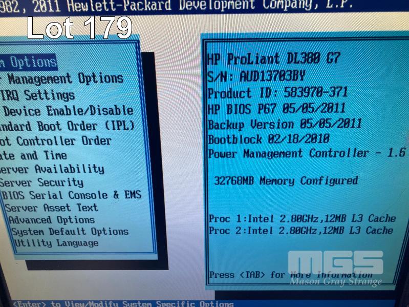 RACKMOUNT SERVER, HP PROLIANT DL380 G7, 2U, 2 x XEON X5660 @ 2.8GHz, 32GB ECC DDR3 RAM, 4 x 300GB SAS HDD, 2 x 72GB SAS HDD. DVD-RW, 2 x 750W PSU WITH RAILS S/N:AUD13703BY