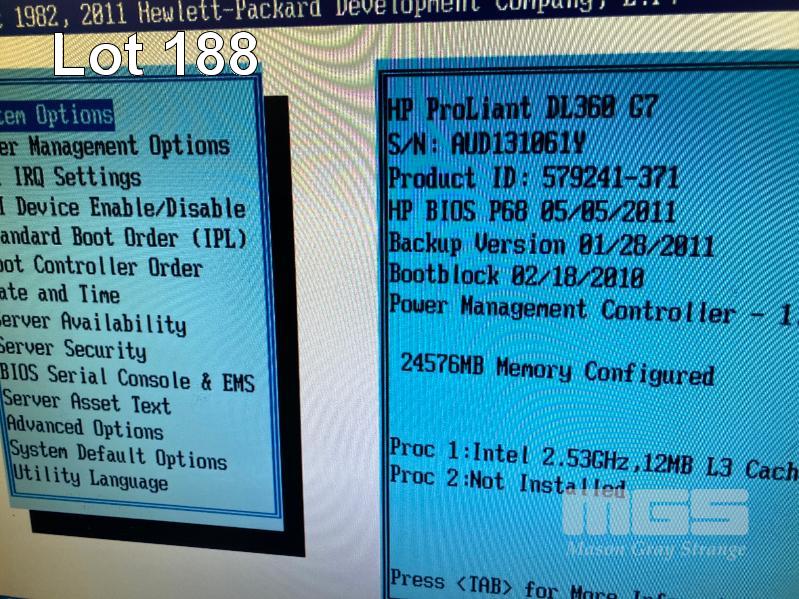 RACKMOUNT SERVER, HP PROLIANT DL360 G7, 1U, XEON E5630 @ 2.53GHz, 24GB ECC DDR3 RAM, 2 x 146GB SAS HDD, 2 x 460W PSU WITH RAILS S/N:AUD131061Y
