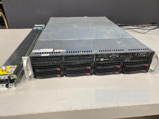 RACKMOUNT SERVER, SUPERMICRO, 2U, 2 x XEON E5-2609 v2 @ 2.5GHz, 32GB ECC DDR3 RAM, 2 x 500GB SATA HDD, DVD-RW, QLE2562 FIBRE CHANNEL, SINGLE PSU WITH RAILS