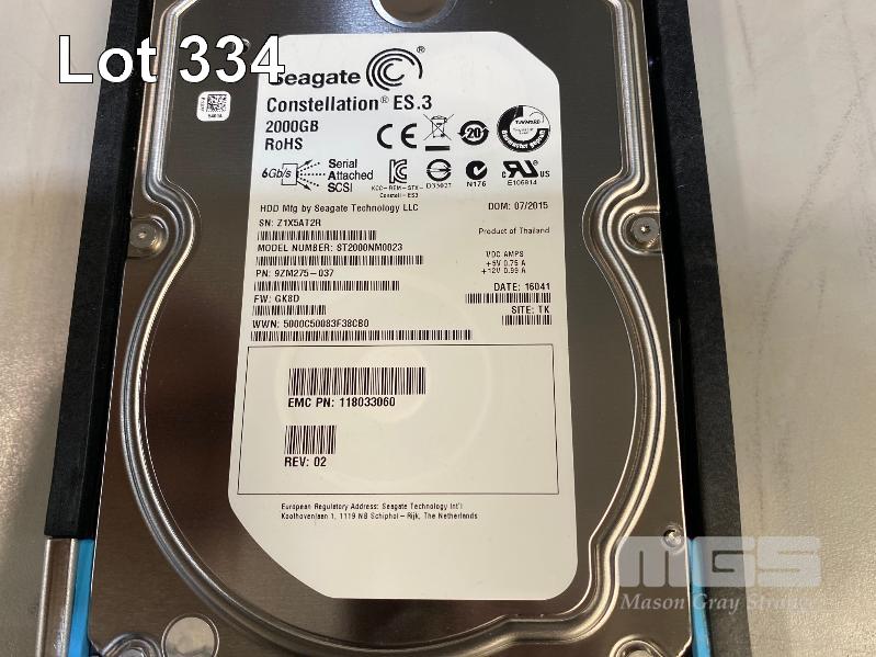 RACKMOUNT STORAGE ARRAY, DELL EMC2, MODEL KTN-STL3, 15 x 2TB SAS HDD, 2 x SAS CONTROLLERS (303-108-000E), 2 x PSU WITH RAILS (NO CABLES) S/N:CKM00154001331