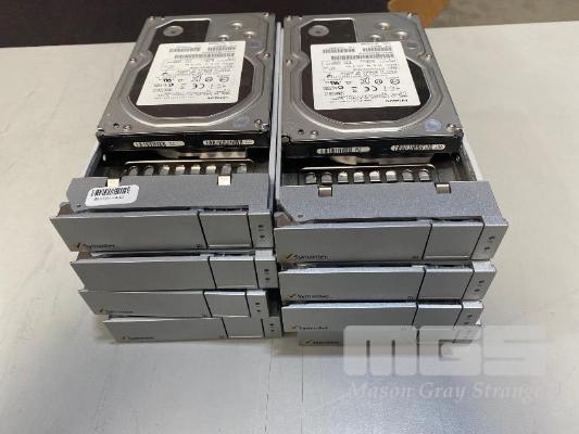 8 x HITACHI 3TB SAS HARD DRIVES, 3.5" WITH SYMANTEC CADDIES
