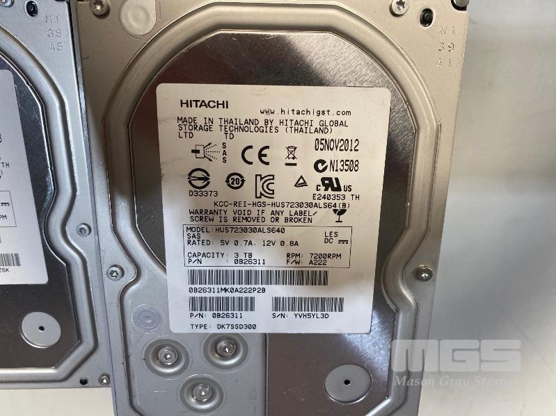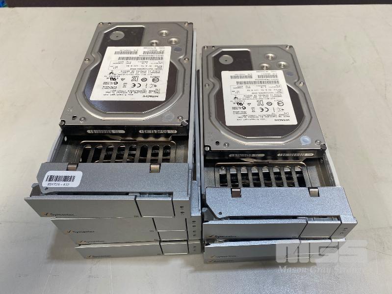 7 x HITACHI 3TB SAS HARD DRIVES, 3.5" WITH SYMANTEC CADDIES