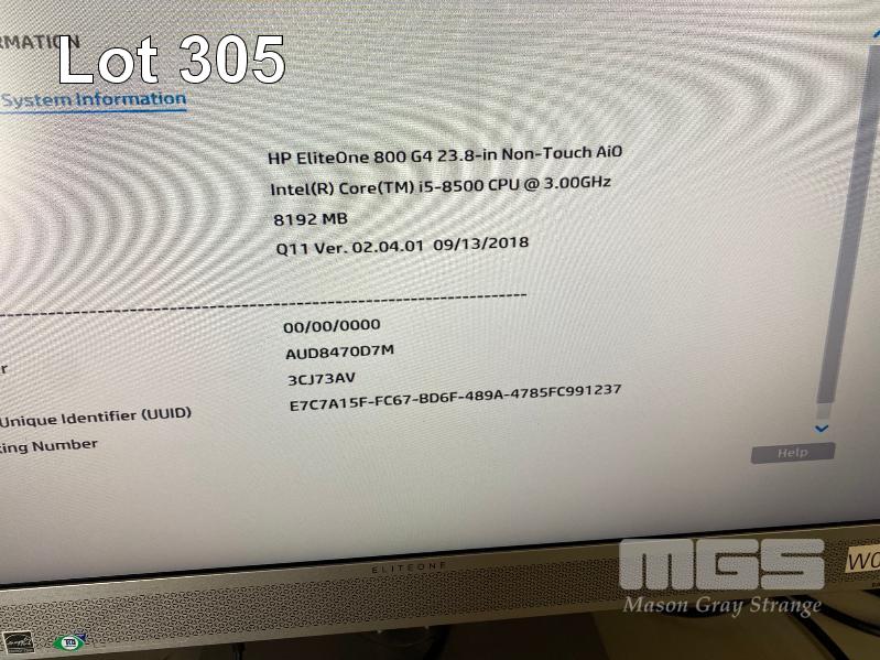 ALL-IN-ONE PC, HP ELITEONE 800 G4 (3CJ73AV), CORE i5 8500 (8TH GEN) @ 3GHz, 8GB DDR4 RAM, 256GB NVMe M.2 SSD, INBUILT 23.8" WIDESCREEN (1920x1080), INTEL UHD GRAPHICS, Wi-Fi, 6 x USB, 1 x USB-C, WINDOWS 10 PRO INSTALLED (NO KEYBOARD, NO MOUSE) S/N:AUD8470D7M
