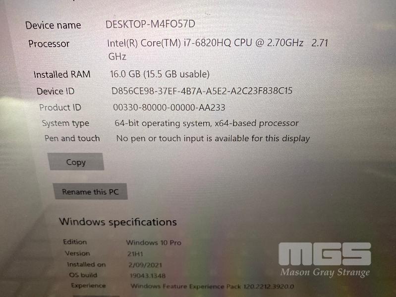 LAPTOP, LENOVO THINKPAD P50 MOBILE WORKSTATION (20EQS3FV00), CORE i7 6820HQ (6TH GEN) @ 2.7GHz, 16GB DDR4 RAM, 500GB NVMe M.2 SSD, 15.6" 4K WIDESCREEN (3840x2160), 4GB NVIDIA QUADRO M1000M VIDEO, Wi-Fi, BLUETOOTH, WINDOWS 10 PRO INSTALLED & POWER SUPPLY (NEW SCREEN INSTALLED) S/N:PC0P7LSY