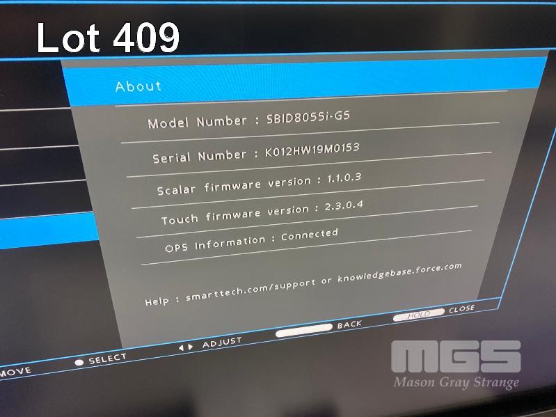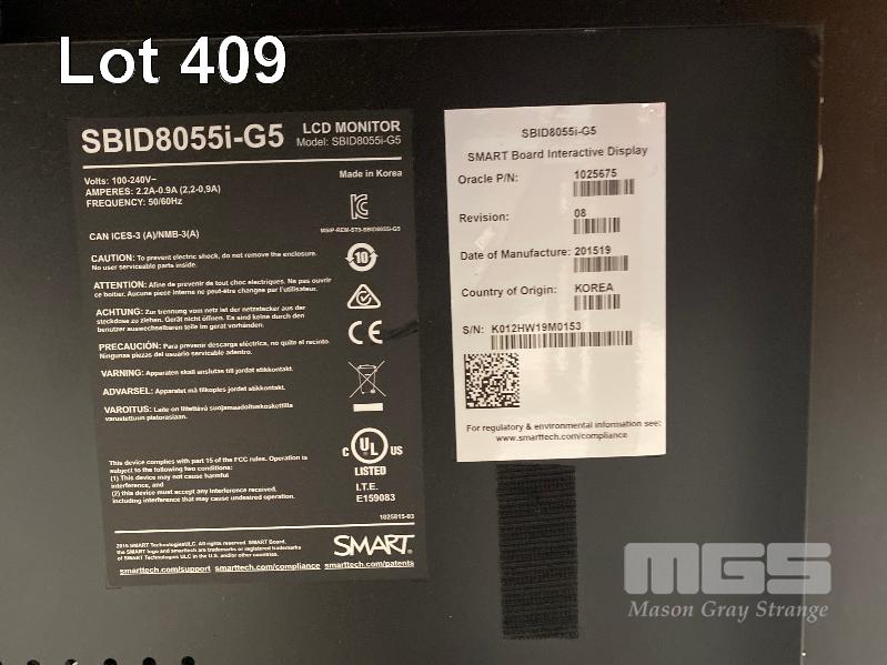MONITOR, SMART BOARD 55" COMMERCIAL LCD INTERACTIVE TOUCH DISPLAY, MODEL SBID8055i-G5, HDMI INPUT (NO REMOTE, NO STAND) S/N:K012HW19M0153