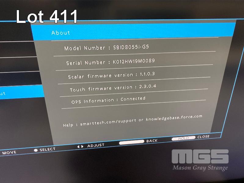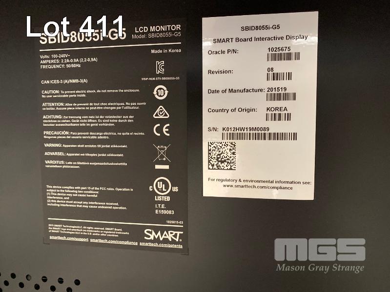 MONITOR, SMART BOARD 55" COMMERCIAL LCD INTERACTIVE TOUCH DISPLAY, MODEL SBID8055i-G5, HDMI INPUT (NO REMOTE, NO STAND) S/N:K012HW19M0089