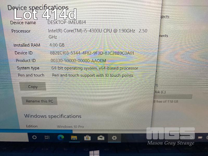 TABLET PC, MICROSOFT SURFACE PRO 2, MODEL 1601, CORE i5 4300U (4TH GEN) @ 1.9GHz, 4GB RAM, 128GB SSD, 10.6" TOUCHSCREEN, Wi-Fi, WINDOWS 10 PRO INSTALLED, KEYBOARD TYPE COVER & POWER SUPPLY S/N:000923741753