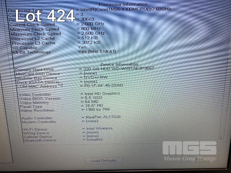 LAPTOP, DELL LATITUDE E6540, CORE i5 4300M (4TH GEN) @ 2.6GHz, 4GB DDR3 RAM, 320GB SATA HDD, DVD-RW, 15.6" WIDESCREEN (1366x768), INTEL HD VIDEO, Wi-Fi, BLUETOOTH, WINDOWS 10 PRO INSTALLED, DOCKING STATION & POWER SUPPLY S/N:8MYWSY1