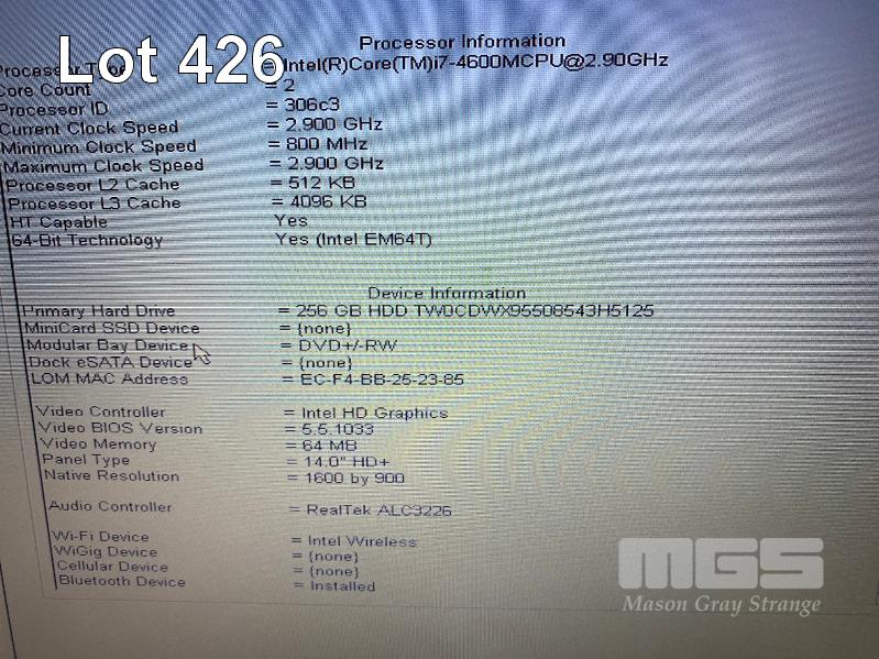 LAPTOP, DELL LATITUDE E6440, CORE i7 4600M (4TH GEN) @ 2.9GHz, 8GB DDR3 RAM, 256GB SSD, DVD-RW, 14" WIDESCREEN (1600x900), INTEL HD VIDEO, Wi-Fi, WINDOWS 10 HOME INSTALLED, DOCKING STATION & POWER SUPPLY S/N:C3XWXZ1