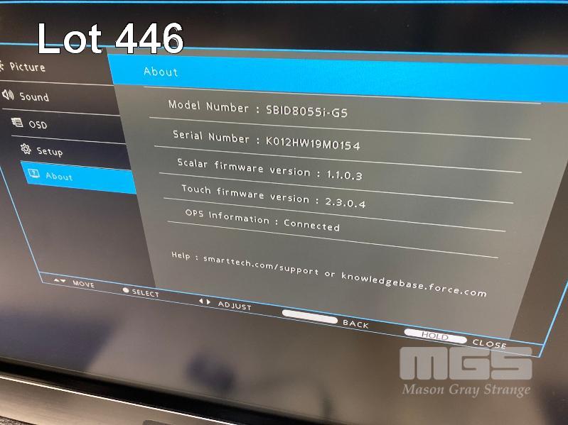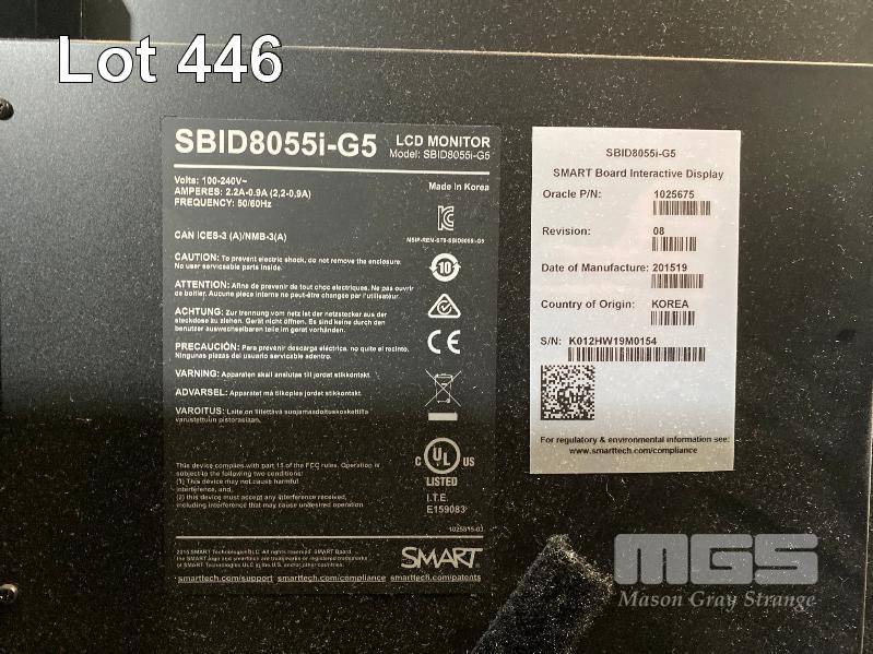 MONITOR, SMART BOARD 55" COMMERCIAL LCD INTERACTIVE TOUCH DISPLAY, MODEL SBID8055i-G5, HDMI INPUT (NO REMOTE, NO STAND) S/N:K012HW19M0154