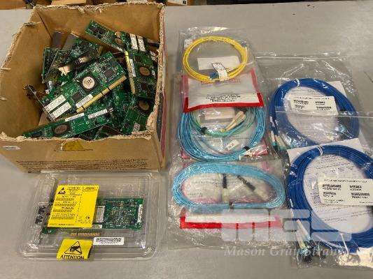 QTY ASST QLOGIC FIBRE CHANNEL CARDS & ASST FIBRE OPTIC CABLES