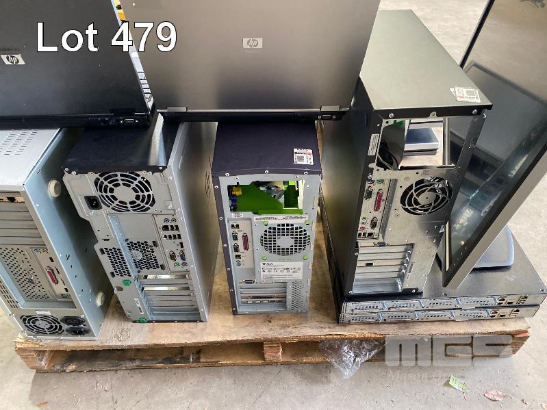 PALLET LOT ASST MONITORS (VARIOUS ISSUES), INCOMPLETE COMPUTERS, APC UPS (FAULTY), 2 x OLD LAPTOPS ETC