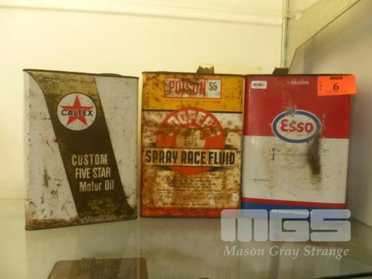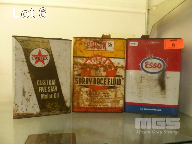 3 x VINTAGE OIL TINS, ESSO, CALTEX & COOPERS